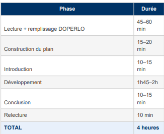 Réservez 10 minutes en fin d’épreuve pour votre conclusion — pas négociables. Si vous n’avez pas ces 10 minutes, c’est que votre planning de rédaction a dérapé ailleurs, pas dans la conclusion.